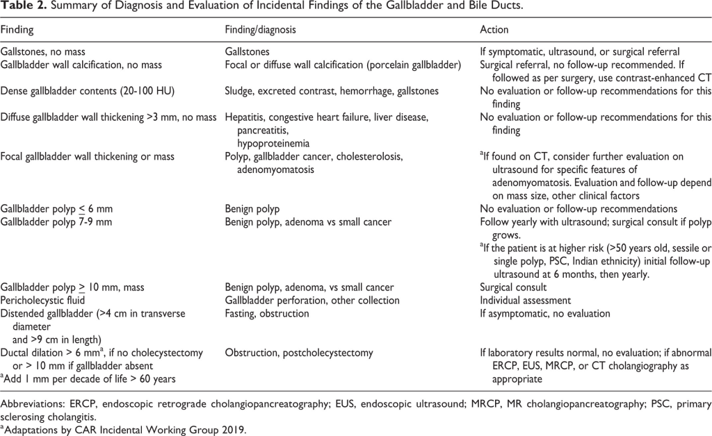 Source: Recommendations for the Management of Incidental Hepatobiliary Findings in Adults: Endorsement and Adaptation of the 2017 and 2013 ACR Incidental Findings Committee White Papers by the Canadian Association of Radiologists Incidental Findings Working Group