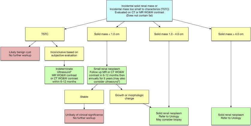 Source: Recommendations for the Management of the Incidental Renal Mass in Adults: Endorsement and Adaptation of the 2017 ACR Incidental Findings Committee White Paper by the Canadian Association of Radiologists Incidental Findings Working Group